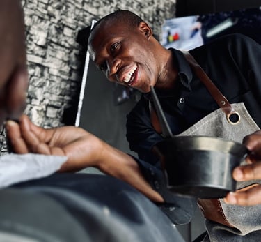 Mais do que um corte, uma afirmação de poder. Os nossos mestres barbeiros esculpem o seu visual com precisão cirúrgica durante 60 minutos, garantindo que sai da cadeira com a imagem de um líder. A excelência não se apressa. Benefício destaque: A confiança inabalável de quem sabe que está impecável em qualquer ângulo.
